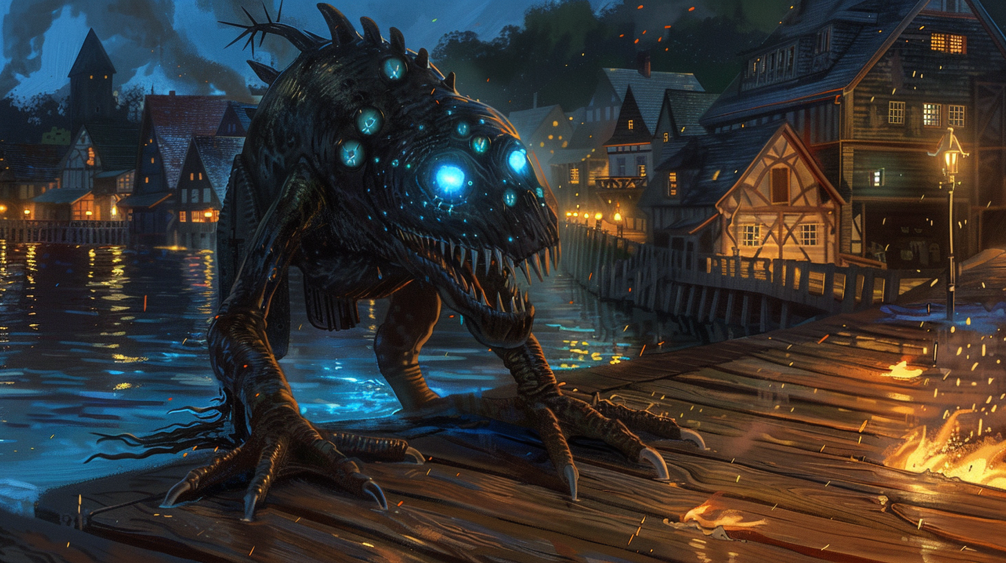 As they made their way up the street, the three found ahead of them a triplet of thugs who were decked out in clockwork gadgets undoubtedly designed to improve their performance at their job: robbing people. The thugs sneered and taunted the three, asking where they thought they were going. As Firen prepared to show the ruffians that they had picked the wrong group to rob, a figure dropped down from a nearby building and struck down all three thugs with a single elegant swirl of steel and flame. The figure bore grey robes and an elaborate mask made in the likeness of a bird. In his hands, a Starsteel kizaraka and a magical blade made of fire. The figure raised the flaming sword towards the three and demanded that they surrender “the witch” to him. Theo and Firen declined, and prepared to fight the figure. From behind them, the party heard the howling of wolves—a strange sound in the busy city of Destral. But the sounds became much more than just that soon—a pack of living shadow wolves and Phayu that glistened with a dark yet golden light descended upon them. Crystal recounted the tales of the The Black Ghoul of Jingho, a Mabosa who prowled The Eastern Provinces at the behest of the Songkram Empire. At his beck and call were a pack of monstrous wolves.