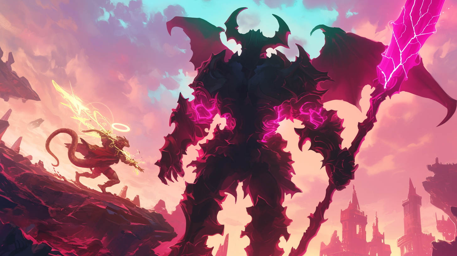 Renewed by the divine power of the angel, the team turned to face the gargantuan frame of Baal’s avatar. The demon swung its massive spear, but they all ducked under it. With a mighty spire-shaking crash, Baal’s spear was lodged into the side of the tower. Red leaped onto the spear, rushing across the shaft, up Baal’s arm, and onto Baal’s shoulder. His spear glowing with the empty light of the Void and the burning radiance of the heavens, he began to thrust into the Demon’s armoured neck. In the meantime, Theo launched himself into the air using his rocket boots, Silvaar’s rapier in hand. He flew into the Demon’s face, thrusting it into the glowing unholy rune on his horned helmet’s forehead. Firen called once more upon the abyssal darkness of the Void to warp space around Baal, restricting the evil warrior from moving fast enough to swat Theo and Red off.
