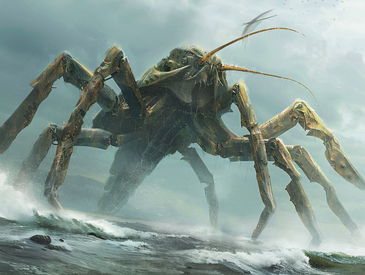A giant water strider insect that made its home on the surface of the ocean. While they could grow to be the size of a schooner, ocean wanderers were peaceful creatures that used a fishnet-like web to trawl for large schools of fish.