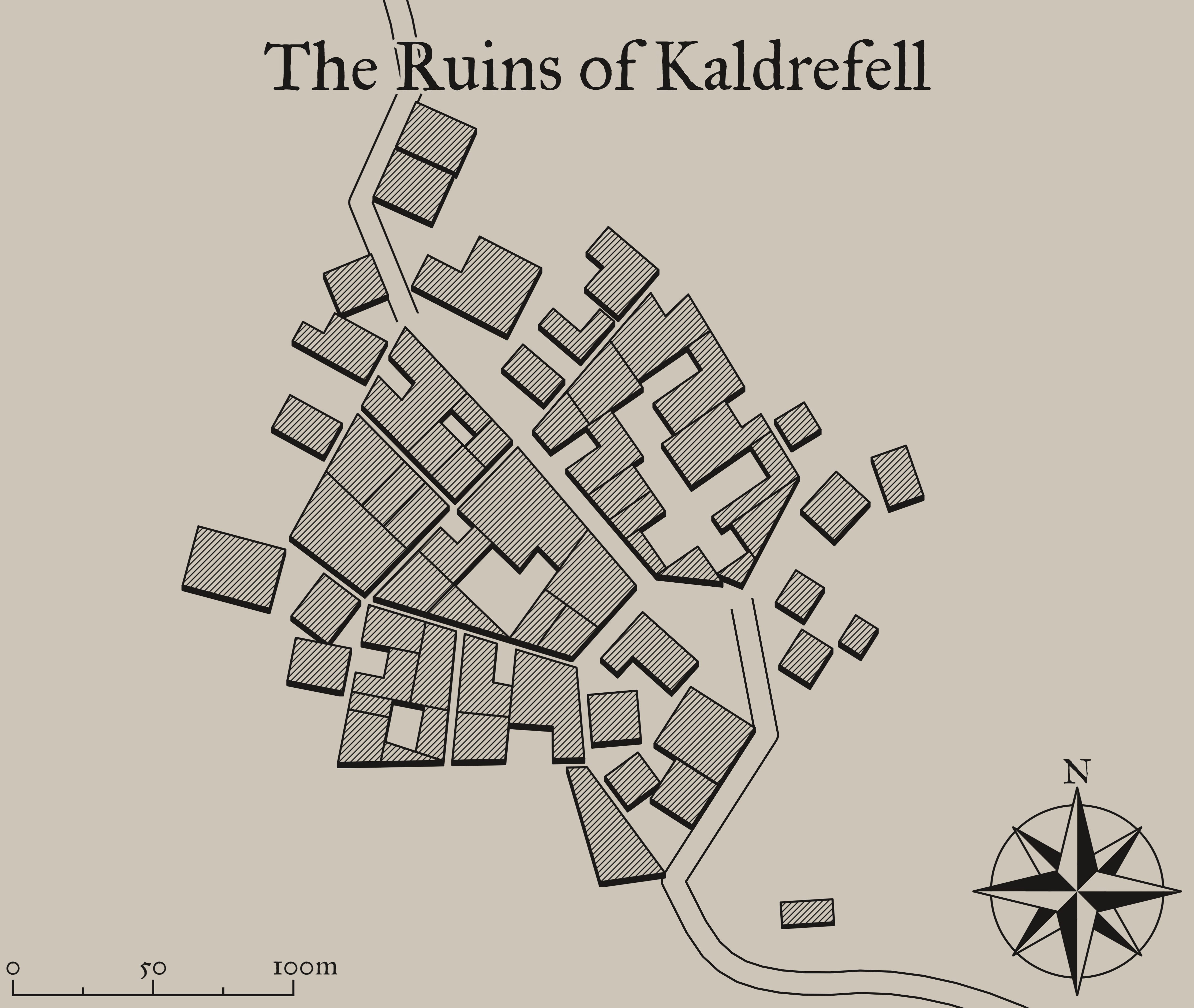 Kaldrefell was a Corgathian town located at the base of the Phayu Wing Mountains. It was tragically destroyed during Demon Wars, when the demon Baal and his legions razed the north. The ancient Clypheus tried to protect the town, but was tragically slain by Baal. A memorial for the fallen, and for Clypheus was made, which was called Traustendlat.